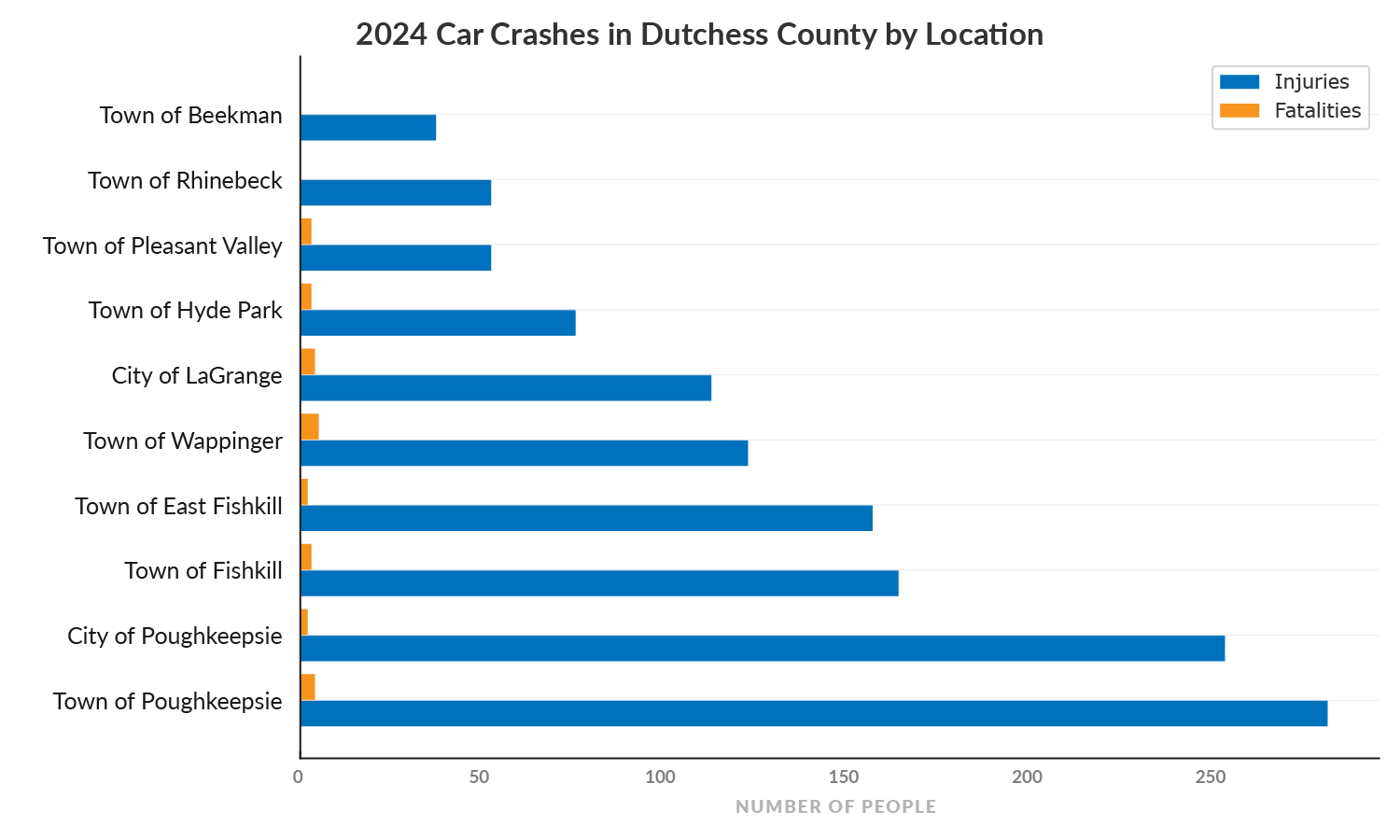 In 2024, Ulster County residents had 22 fatal car crashes, 194 “serious” injuries, 224 “moderate” injuries and 731 “minor” injuries.